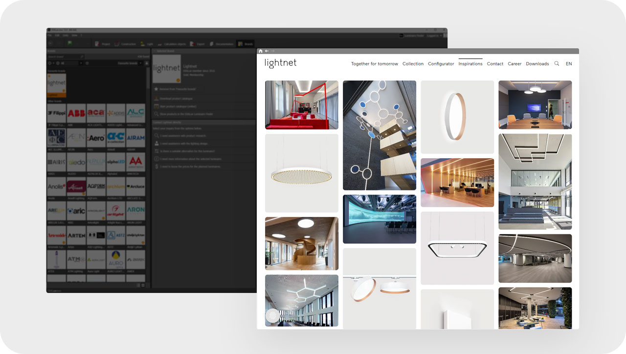 Planer übertragen eure Leuchten mit einem Klick von eurer Website in ihr DIALux Projekt. Zusätzlich sind eure Produkte in einem individuell gestaleten Leuchtenkatalog in DIALux integriert und im Luminaire Finder sichtbar.